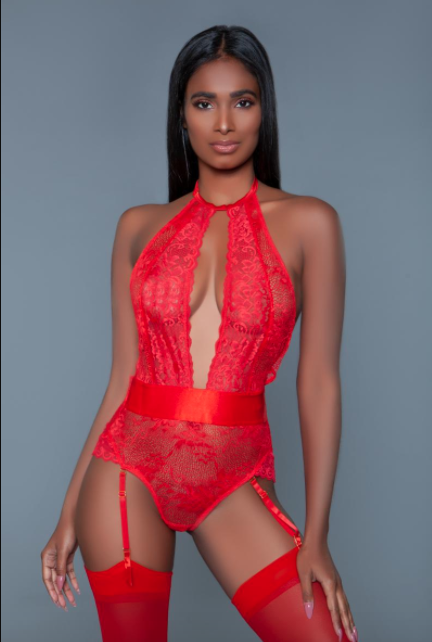 This sexy Be Wicked garter bodysuit features a beautiful lace pattern and adjustable garter straps. The thong bodysuit has an adjustable halter neck and is made of elastic material.